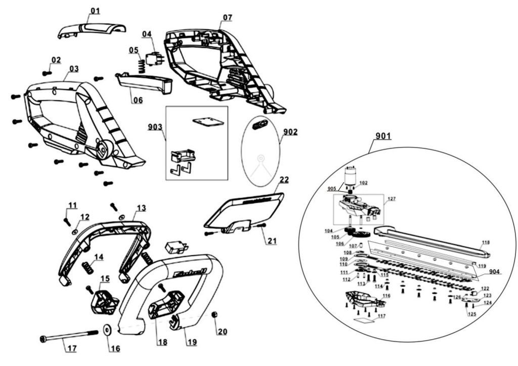 The GC-CH 1846 Li cordless hedge trimmer is an efficient tool which thanks to its low weight and handy size provides good service for the trimming of hedges, shrubs and bushes on large grounds and allotments where there is no connection to the electric power grid. For a long service life the gearing is made of metal, for clean cutting results the blades are made of laser-cut and diamond-ground steel. The integrated two-hand safety switch brings the cutters to a standstill in less than 1 second when a switch is released. The cutters are protected by an aluminium cover. The shock guard has a hole for wall mounting and enables this cordless hedge trimmer to be stored away in an instant in minimum space. The GC-CH 1846 Li comes with a sturdy cutter guard for safe and user-friendly transportation or storage. No battery or charger included.